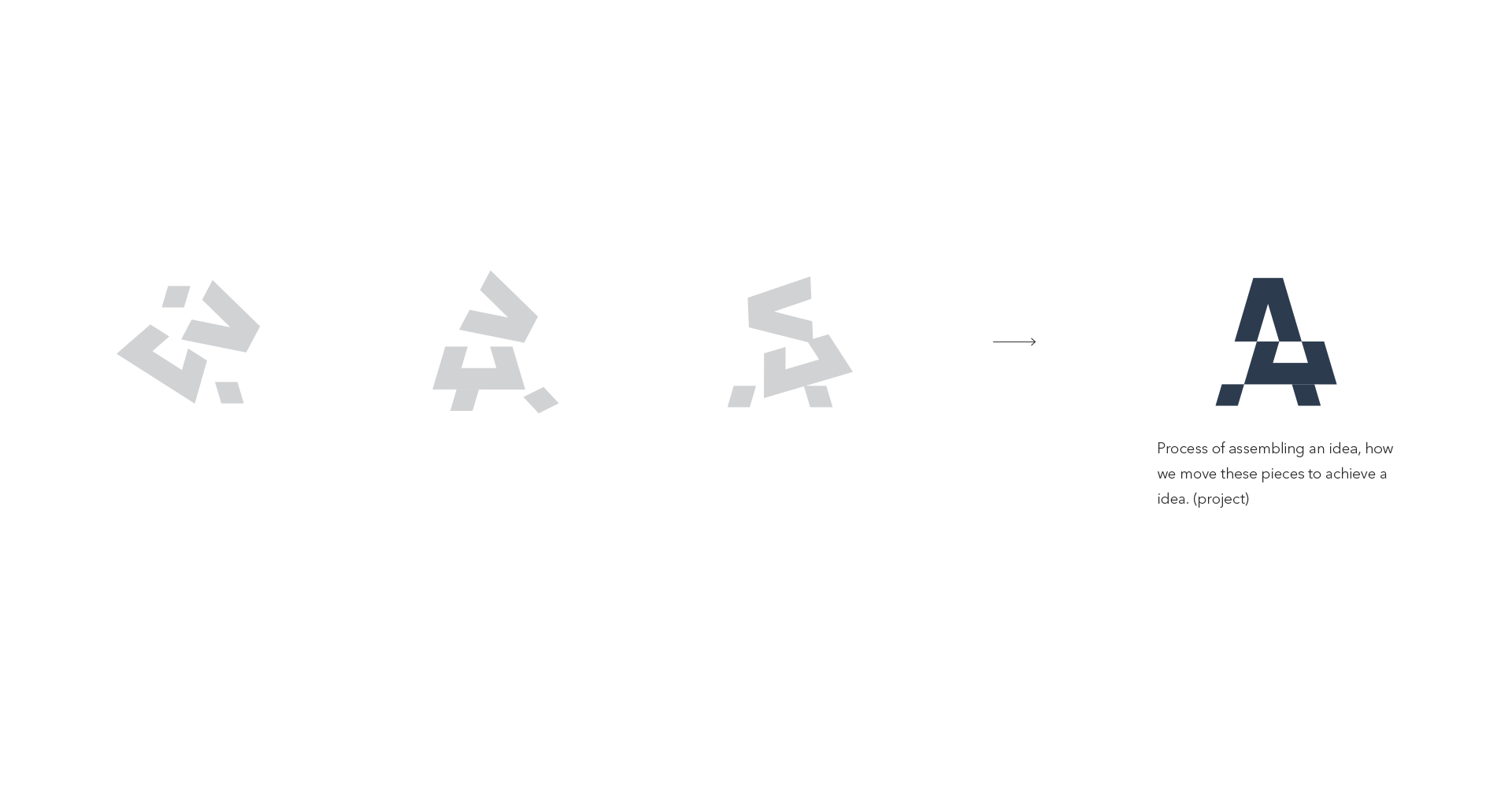 For the brand, our goal was to design a letter "A" that visually communicated the idea of being composed of four distinct components. The concept explores how these four elements progressively intertwine, culminating in a fully defined shape (idea).