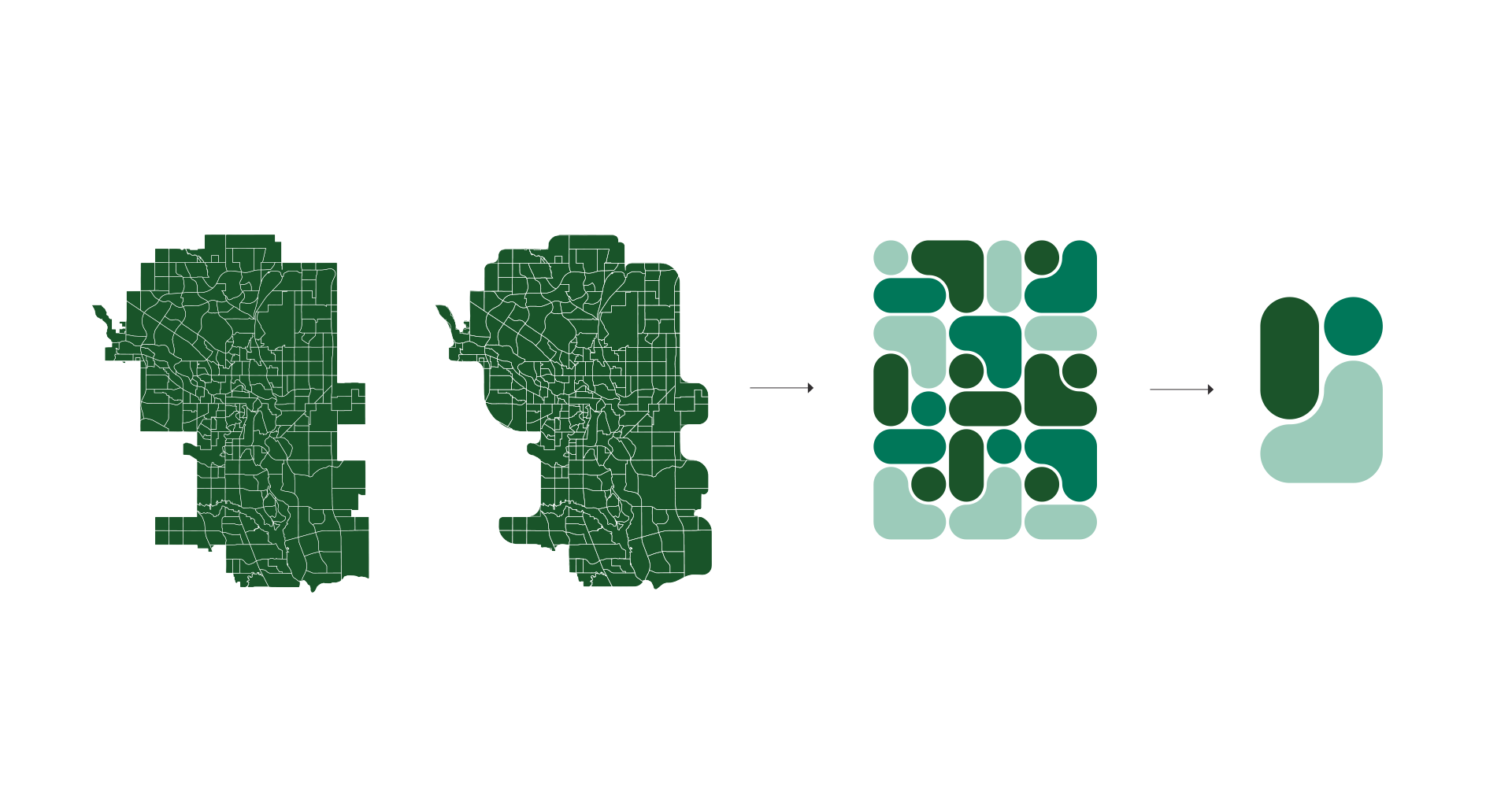 The proposal introduced a distinctive background color for each service offered by CivicWorks. The accompanying patterns are abstract interpretations of Calgary’s communities, derived from their geographic boundaries. Each form is unique, yet collectively they illustrate a city that is diverse, interconnected, and continuously evolving.