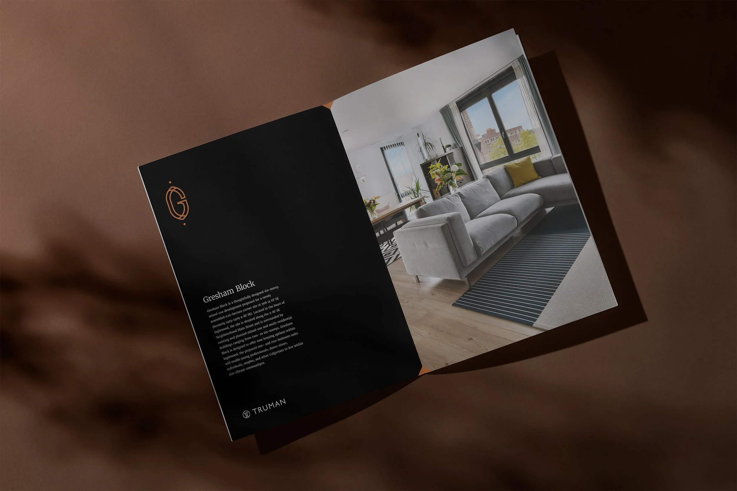 Truman Homes sought a brand identity for the new Gresham Block building that would honor its historical legacy while situating it within a contemporary, modern context. They also prioritized an identity that reflected the character of the surrounding neighborhood, emphasizing friendliness, respect, and a strong sense of community.